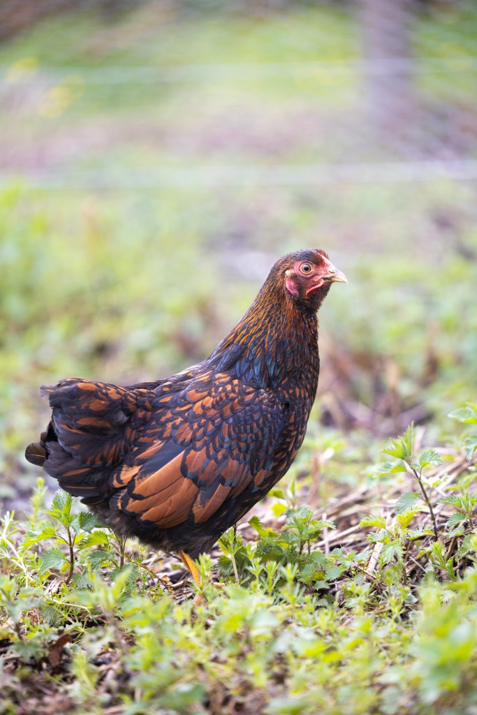 C’est une poule qui pond entre 100 et 200 œufs par an. Le coq pèse environ 1,3 kg tandis que la poule pèse environ 1,1 kg. Ses œufs sont bruns presque roux.
